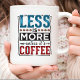 Típica caneca de café, com a frase "Menos é mais a menos que seja café."