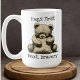 Esta xícara de café é uma coisa adorável de se olhar para a primeira coisa pela manhã. Este bonitinho e vulnerável ursinho abraça um travesseiro e mentalmente se prepara para o dia. Abraços primeiro. A seguir, bravura. Você pode facilmente mudar o texto da caneca para algo mais pessoal para você. Ou adicione o seu nome ou o nome de uma pessoa amada e dê isto como presente. Eu criei esta caneca como um lembrete para se tratar com amor e compaixão. E uma grande quantidade de café ou chá também não dói!