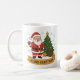 Celebrar a época de Natal com a nossa caneca de Natal festiva, com Papai Noel, uma árvore de Natal, e a saudação de "Feliz Natal" contra um fundo de neve. Perfeito para seu café matinal ou como um presente de Natal bem pensado!