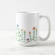 Flores multicoloridas num jardim de cor branca à volta da caneca