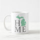 Na moda personalizada caneca de café apresenta um design de tipografia com texto "Home" e mapa do estado de Michigan. Clique na opção Personalizar para mover o marcador da cidade do coração branco em ambos os lados da caneca. Você pode posicioná-la diretamente sobre a cidade onde você mora ou sobre a sua cidade natal. Cinza de carvão, jade / hortelã verde e cores brancas.