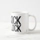 Uma caneca que apresenta o design Mighty Cockblock e o personagem original por Trabalhos de arte Stitchhead.