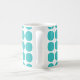 Mini Bolinhas Mug bonito e moderno. Este design apresenta pequenas bolinhas circulares em azul-turquesa e branco. O texto pode ser adicionado a esta design para lhe dar um toque pessoal.