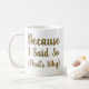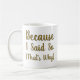 Minimalist Because I Said So mug featuring a clean, modern design with a bold and relatable mom slogan. Perfect for everyday use, or as a fun gift for moms or anyone who run the show with style and humor. Effortlessly trendy for any mom life moment.