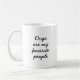 Esta caneca apresenta a citação brincalhona, "Cachorros são minhas pessoas favoritas" na frente, e uma pequena pata no verso. Perfeito para amantes de cachorros que querem mostrar seus amigos peludos em estilo ou como um presente pensativo para os companheiros de estimação.