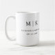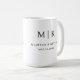 Mínimo e Chic | Mug de café de Casamento Negro e Branco Estes fraldos de casamento ou chá de panela elegantes e modernos apresentam um simples design de texto preto e branco que exumenta o estilo minimalista. Adicione suas iniciais ou monograma para torná-las completamente suas.