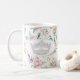 Uma coroa tradicional, tipo hobnail, do tipo Miss America, agarra os lados desta caneca de café e é mostrada num impressão floral de rosa bonito. Compre ou personalize esta caneca. Imagem licenciada