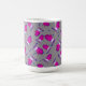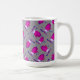 Esta caneca festiva apresenta mitenes de aquarela cor rosa sobre um fundo de pontos em cinzas.
