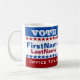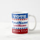 Modelo de caneca de campanha vermelha, branca e azul com estrelas brancas. Faz um presente excelente para eleitores, colaboradores de campanha, políticos, voluntários, memorabilidades e muito mais!