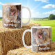 Compartilhe o humor matinal de café com uma riser precoce ou alguém que não goste tanto de manhã. Esta foto de frango em ambos os lados da alça também apresenta texto de modelo. Personalize as quatro linhas de texto modelo que aparecem em ambos os lados da alça, remova o texto ou edite usando a ferramenta design para selecionar um estilo de fonte, tamanho e cor que você preferir.