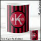 Apresente uma reviravolta arrojada à sua coleção de canecas com canecas listradas espantosamente modernas, apresentando preto clássico emparelhado com uma cor de sua escolha, com um espaço para adicionar um nome próprio e inicial. Este design pega a elegância eterno do preto e o funde com um pop de cor para criar uma peça visualmente impactante que se destaca em qualquer cenário. Ideal para aqueles que apreciam um pouco de sofisticação com o seu café da manhã ou o chá da noite, estas canecas são tão funcionais quanto são na moda. As listras contrastantes não só aumentam a estética da caneca, como também a fazem um dom perfeito ou um complemento à sua própria coleção de canecas. Observe que cada cor tem duas opções; uma fonte de tamanho maior para nomes de 5 caracteres ou menos e uma fonte de tamanho menor para aqueles acima.