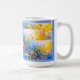 Bright modern artwork of sweeping flower fields wraps a white ceramic mug with sunshine.