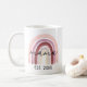 Moderna Mama Script Boho Rainbow Mug Quer você seja uma nova mãe, uma mãe estabelecida ou à procura de um presente personalizado para uma mãe esperançosa, esta caneca do arco-íris moderna é o presente perfeito. Este design apresenta um bonito arco-íris de aquarela boêmica com a palavra mama em um roteiro moderno. Personalize facilmente esta caneca com uma data ou ano estabelecido da sua escolha.