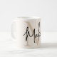 This modern coffee mug features a monogram and name in stylish script calligraphy on a neutral beige background. It is easily customizable.
