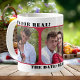 Save the Date photo mug featuring your own photos on a simple design. In the advanced editor you can choose a different color for the red shape if you like (or you can also delete it if you do not need it). Great as Save the Date or wedding mug and customizable for other occasions.