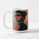 Uma caneca de café personalizada, com uma moderna moça, com a ilustração retrô do pôr do sol. Disponível em 11 e 15 oz.