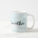 Apenas "respire". Adorável design azul moderno com estilo tipográfico com letras pretas Perfeito para seu café da manhã ou chá da tarde. Motivação e inspiração para se lembrar de se cuidar sozinho.