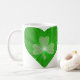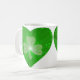 Um design moderno com dois corações brilhantes e verdes com chamas cintilantes dentro de fundo branco. Mug com um design personalizável para você personalizar com sua própria cor de fundo, texto, imagens e ideias. Disponível em todas as opções de estilo. Criado com fotografias originais e técnicas digitais por Jess Perry.