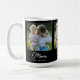 Mom Established Script Black 3 Photo Coffee Mug with elegant white script typography. Easy to customize. Add your photo and customize the "EST." date with the year your child was born. Add additional years for each child.
