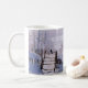 Obtenha acolhedor com uma chávena de café ou um cacau morno e aprecie a neve do inverno.