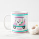 This elegant monogram pink leather golf cart mug has a golf cart that has a digital glitter with a lime green golf seats with a pink argyle golf bag! Personalized with your name and monogram for this one of a kind mug.