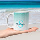Caneca De Café Monograma Aqua Blue Glitter Glam
