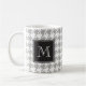 O teste padrão cinzento e branco do houndstooth nesta caneca do monograma pode ser mudado a uma outra cor personalizando o fundo das cinzas à cor de sua escolha.