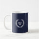 Monograma Clássico Elegante Blue Mug. Monograma branco clássico de jato de louros em azul escuro. Elegante e impressionante.