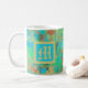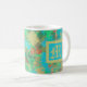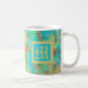 Caneca De Café Monograma de abstrato verde, amarelo e azul