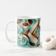 Caneca De Café Monograma de arcos de fita de teal de café elegant