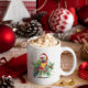 Este tema tropical design de caneca de Natal apresenta um pássaro tropical com um Papai Noel verde de férias e um monograma personalizável. Conheça este feriado com este cheio de caneca da sua bebida favorita.