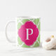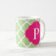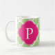 Caneca De Café Monograma de Quatrefoil Rosa Verde
