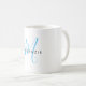 Caneca De Café Monograma de Script Azul do Céu Moderno Elegante