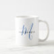 Caneca De Café Monograma de Script Azul Moderno Elegante