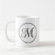 Crie o seu próprio monograma de dentro de anéis em uma taça de café clássica. Um contorno circular redondo para o seu monograma. Tente uma fonte diferente ao personalizar o design. Crie um presente de casamento para um casal ou recém-casados. A cor da borda e do texto pode ser alterada.