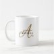 Caneca De Café Monograma de Script Dourado Branco Girly Chic