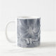 Caneca de café azul-náutica e polvo branco. Simplesmente personalize o design costeiro com seu monograma ou inicial. Você ama a vida costeira e a vida marinha? A ilustração de arte antiga é cativante e detalhada. A design náutica da vida marinha submarina seria perfeita para uma casa de praia, casa de férias, aluguel de curta duração ou barco.