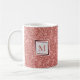 Esta caneca fofa apresenta uma textura brilhante rosa dourada de tendência e um monograma em forma de sombreado em um quadro de mármore.