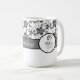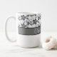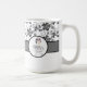 Monograma elegante e padrão floral. Este padrão preto e branco monograma de caneca faz o presente perfeito para ela. O design apresenta uma cinza clássica e um padrão preto. Personalize a caneca com seu primeiro ou sobrenome.