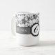 Monograma elegante e padrão floral. Este padrão preto e branco monograma da caneca Olovia faz o presente perfeito para ela. O design apresenta uma cinza clássica e um padrão preto. Personalize a caneca com seu primeiro ou sobrenome.