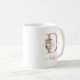 Esta elegante caneca de café apresenta um grande monograma da letra "D" em folha de ouro rosa falso, decorado com um buquê floral de marfim vintage aparado com folhagem verde e dourado rosa. Personalize-a com o nome dela em escrita à mão em ouro rosa, com floreios no início e no final. É um presente perfeito para as damas de honra! Veja nossa loja Ovenbird Designs para outras letras do alfabeto. (Para manter os floreios, substitua apenas as letras do nome.)