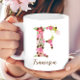 Esta linda caneca de café personalizada apresenta a letra floral F e personalizada com o seu nome no roteiro de caligrafia, ou cria um presente único para os seus entes queridos.