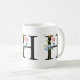 Uma caneca de café personalizada com a letra "H" monograma, com ilustrações decorativas de cor d'água floral e folhagem. Personalize-o facilmente com seu nome ou crie um presente único para seus entes queridos.