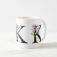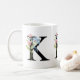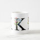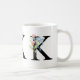 Uma caneca de café personalizada com a letra "K" monograma, com ilustrações decorativas de cor d'água floral e folhagem. Personalize-o facilmente com seu nome ou crie um presente único para seus entes queridos.