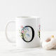 Uma caneca de café personalizada com a letra "O" monograma, com ilustrações decorativas de cor d'água floral e folhagem. Personalize-o facilmente com seu nome ou crie um presente único para seus entes queridos.