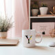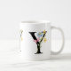 Uma caneca de café personalizada com a letra "Y" monograma, com ilustrações decorativas de cor d'água floral e folhagem. Personalize-o facilmente com seu nome ou crie um presente único para seus entes queridos.
