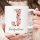Essa linda caneca personalizada apresenta a letra floral J e personalizada com seu nome em roteiro de caligrafia, ou cria um presente único para seus entes queridos.