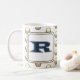 Este monograma de chá matinal ou caneca de café é uma forma excelente de adicionar um toque personalizado à sua rotina matinal. Um padrão de bolinhas aparece contra um fundo branco em ambos os lados desta caneca. A letra "R" aparece em um quadrado. A carta não pode ser personalizada, no entanto, se você estiver procurando outra carta, visite minha loja. Design original - C. McGouldrick