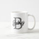 O Moderno nome Elegante do monograma, Black Cinza Script Coffee Mug, oferece uma forma na moda e personalizada de desfrutar das suas bebidas favoritas. Apresentando um sofisticado design preto com roteiro de cinza, esta caneca de café é personalizada com um elegante monograma e nome, fazer-a como um complemento exclusivo e chique para sua cozinha ou escritório. Feito de cerâmica de alta qualidade, ele é durável e esteticamente agradável, perfeito para uso diário ou como presente pensativo. Esta caneca combina estilo personalizado com funcionalidade prática, adicionando um toque de elegância à sua rotina matinal. Se você tiver alguma solicitação de design específica ou precisar de detalhes de personalização, fique à vontade!