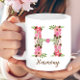 Esta linda caneca de café personalizada apresenta a letra floral H e personalizada com o seu nome no roteiro de caligrafia, ou cria um presente único para os seus entes queridos.